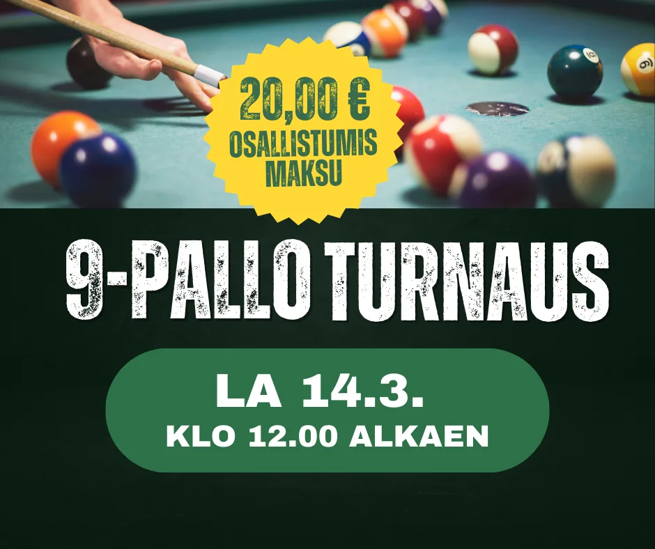 Vihdoinkin päästää Radalla kisaamaan Biljardin Parissa! Varaa paikkasi 14.3. olevaan kisapäivään ja tule haastamaan paikallisia, sekä ulkopaikkakuntalaisia! Ilmoittaudu info@rata57.fi tai 044 711 9579. Ottelut pelataan 4-5 voittoon. Turnaus pelataan tuplaeliminaatiolla,+ 8 cup. Käytössä 4 kpl 9 jalan pöytää. Max 32 pelaajaa. Maksu Rata 57:n kassalle! Kaikki osallistumisrahat jakoon! Ei tasoituksia. Viimeinen ilmoittautuminen 13.3. 12.00 mennessä. Yhteistyössä Salon Biljardiklubin […] ...